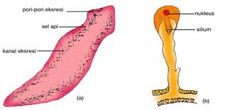Hewan-hewan kelompok ini belum memiliki alat ekskresi khusus,sehingga sisa metabolisme dikeluarkan melalui permukaan tubuhnyasecara difusi.a. Cacing pipih